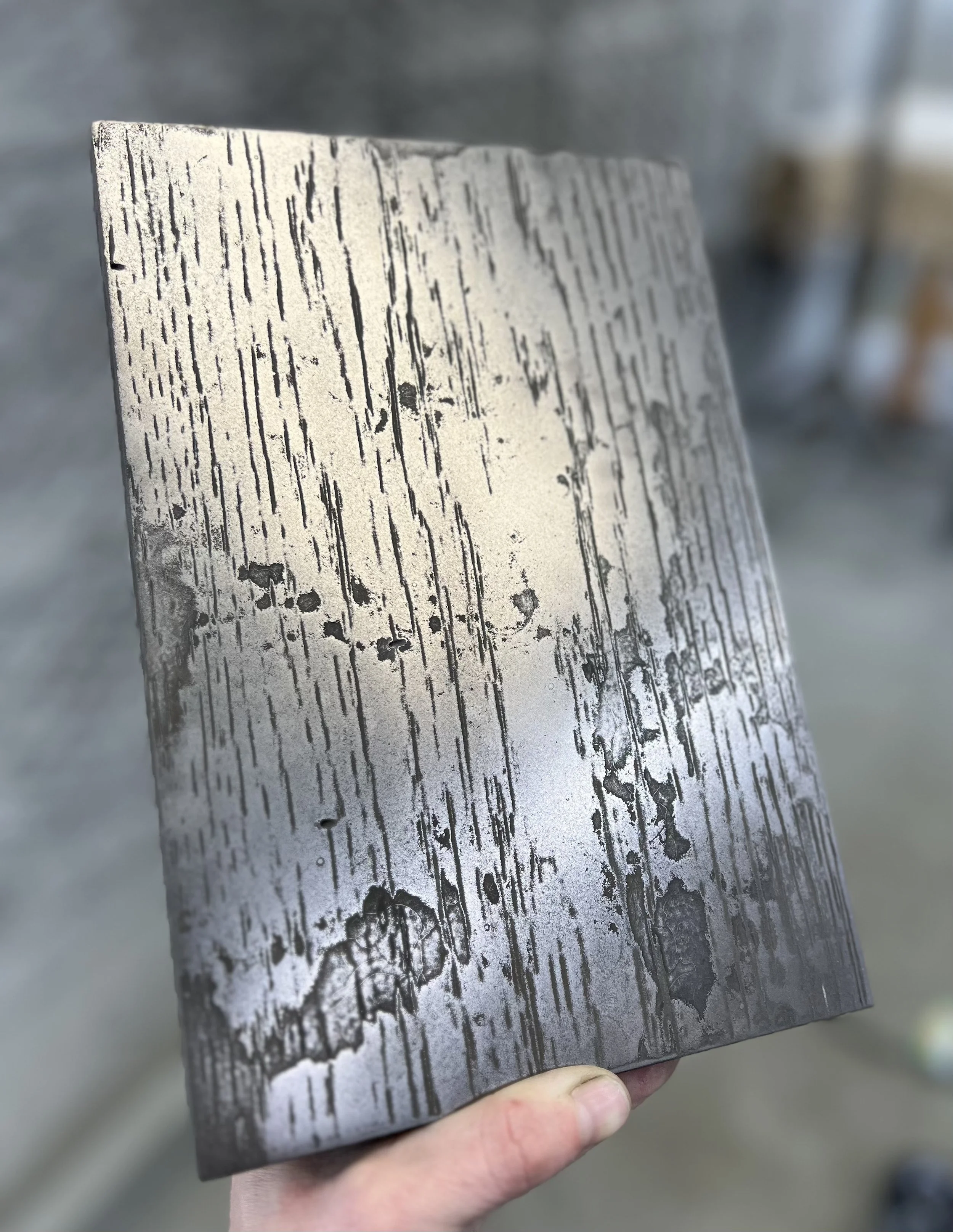 Liquid Metal enables the use of metal aesthetics in your design while cutting costs compared to fabrication. It is essentially a metal veneer.